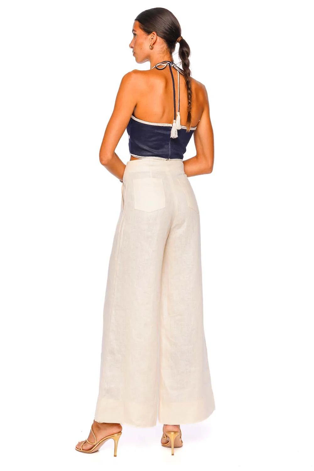 Elevate your wardrobe with the Agave Halter Cutout Cropped Top, featuring a captivating navy hue that exudes modern sophistication. Crafted with precision, this top showcases unique cut-outs and embroidery details along the alluring halter neckline that beautifully accentuates the shoulders. The luxurious fabric offers a perfect blend of comfort and style, making it a versatile addition to your collection. Pair it with high-waisted trousers and stiletto heels for an effortlessly chic ensemble.
