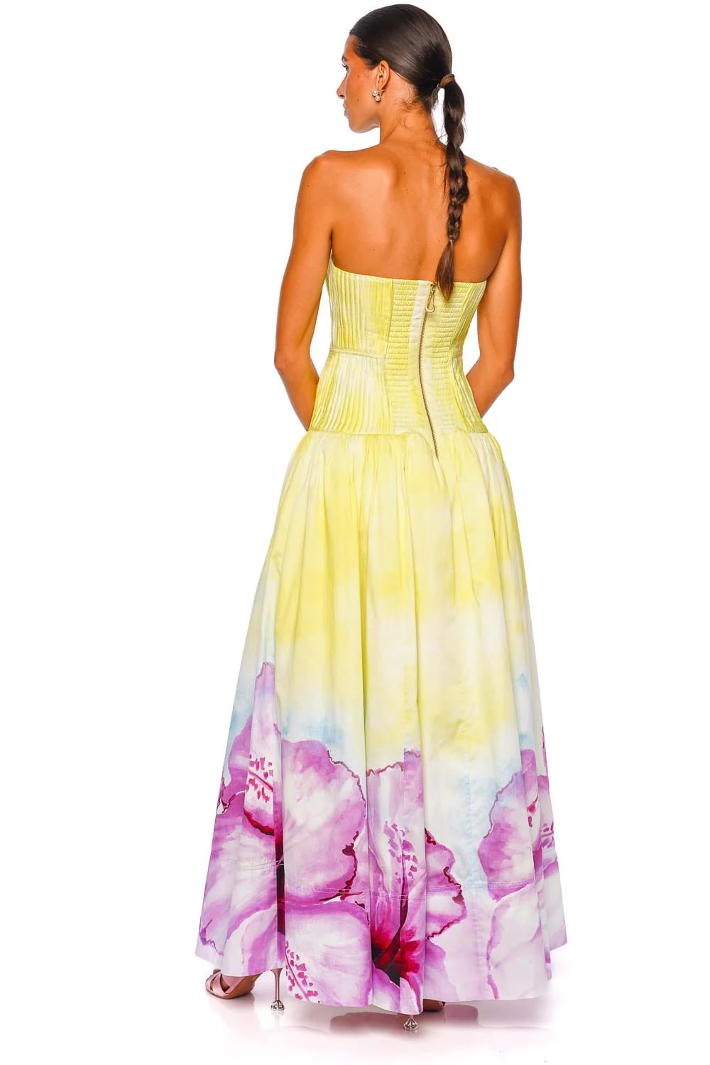 Vacation Ombre Hibiscus Pleated Strapless Gown